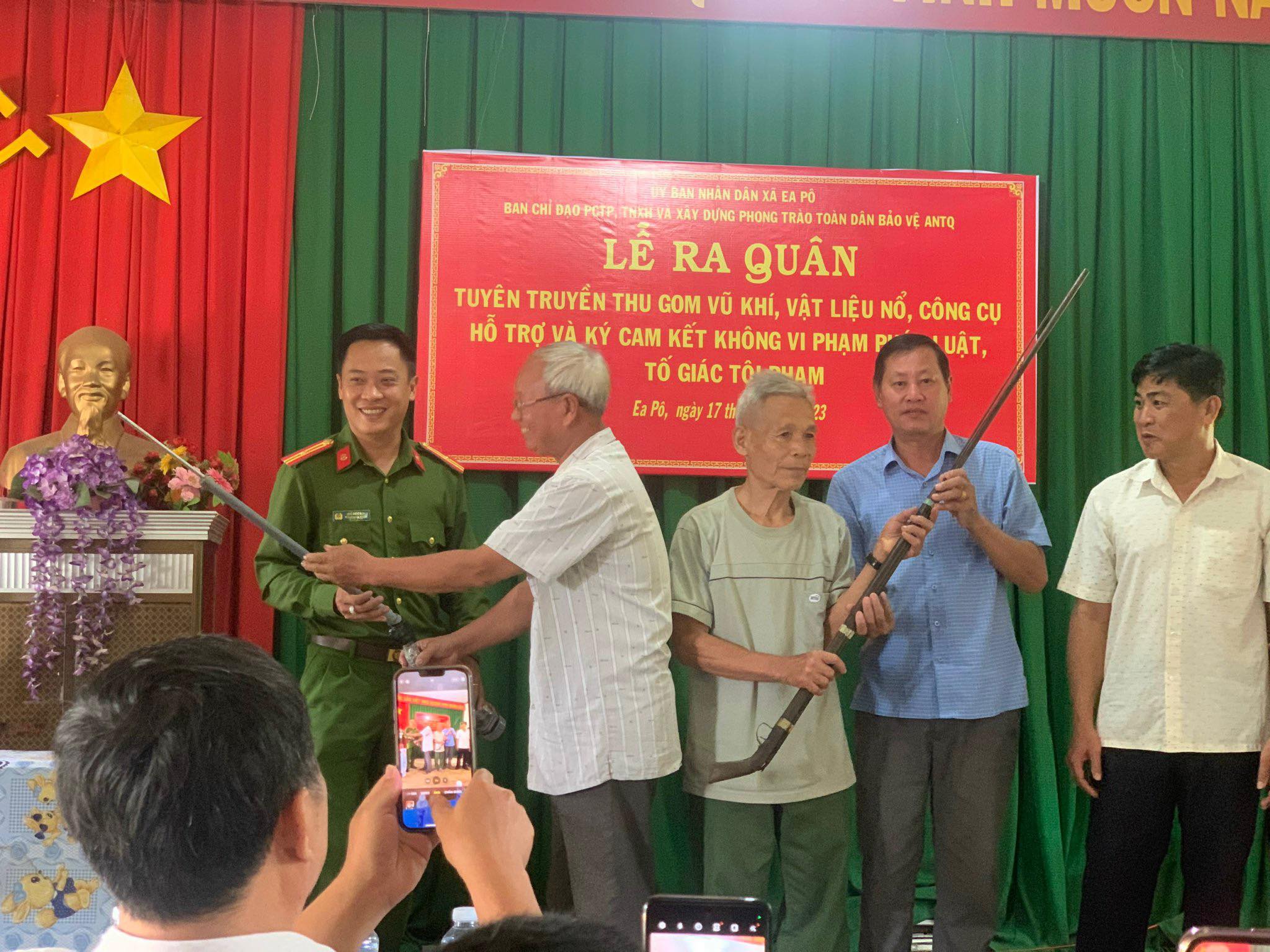 Đạt được kết quả đó là nhờ lực lượng Công an xã Ea Pô đã tích cực tham mưu giúp cấp ủy, chính quyền địa phương, huy động cả hệ thống chính trị vào cuộc tuyên truyền, vận động người dân tham gia giao nộp các công cụ trái phép cho các ngành chức năng.